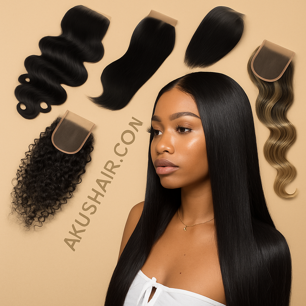 Our Closures give your weave a natural, seamless finish. Made from premium human hair with a realistic lace base, they blend perfectly with Akushair bundles for a complete look.